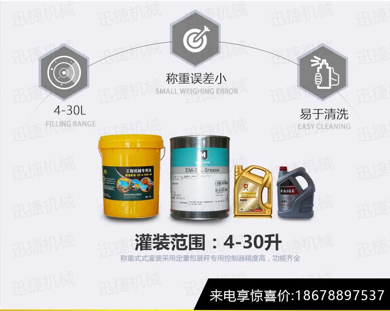 機油灌裝機適用于對4kg-25kg汽車用品類產(chǎn)品:潤滑油、防凍液、車用尿素等液體灌裝。自動完成計數(shù)進瓶、計重量灌裝、輸送出瓶等一系列操作。