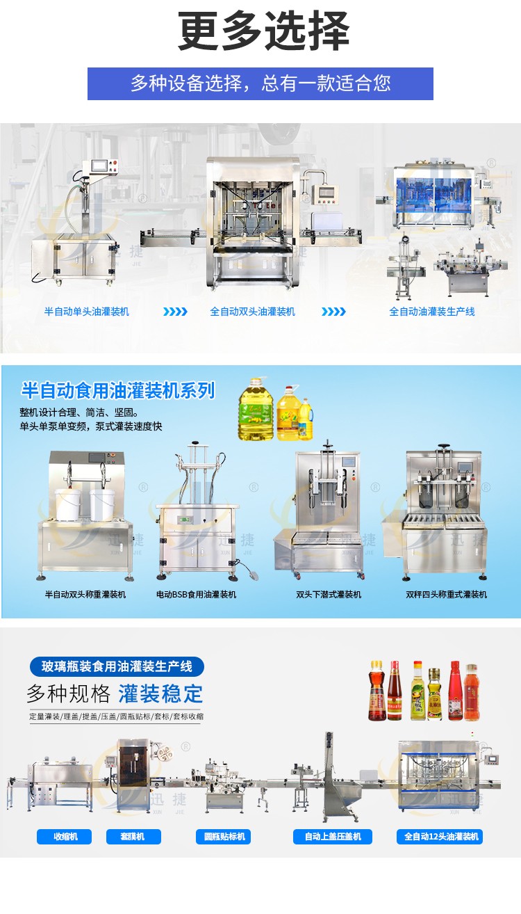 全自動油脂灌裝生產(chǎn)線適用于灌裝各種油類及粘稠液體,如花生油、調(diào)和油、菜籽油等食用油的灌裝??筛鶕?jù)灌裝需求定制機型。