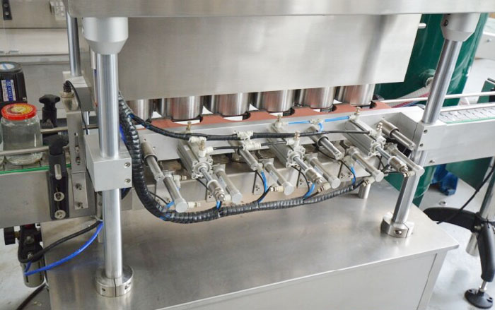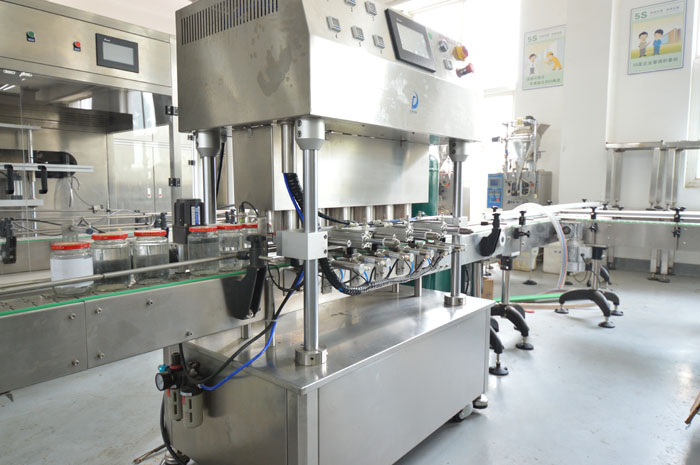 罐頭真空封蓋機(jī)用于調(diào)味品醬、水產(chǎn)罐頭、水果罐頭等采用目前環(huán)保的玻璃瓶包裝后對瓶內(nèi)真空度有比較高要求的三旋、四旋蓋的玻璃瓶進(jìn)行封蓋,本機(jī)配上真空系統(tǒng)后,能先對玻璃瓶內(nèi)進(jìn)行抽吸真空,然后再進(jìn)行旋蓋封口,以延長瓶內(nèi)容物的保質(zhì)期及增強(qiáng)口感,而且不用加熱以保持物料色澤不變。實(shí)行自動(dòng)進(jìn)瓶、自動(dòng)封蓋、自動(dòng)進(jìn)行抽真空。