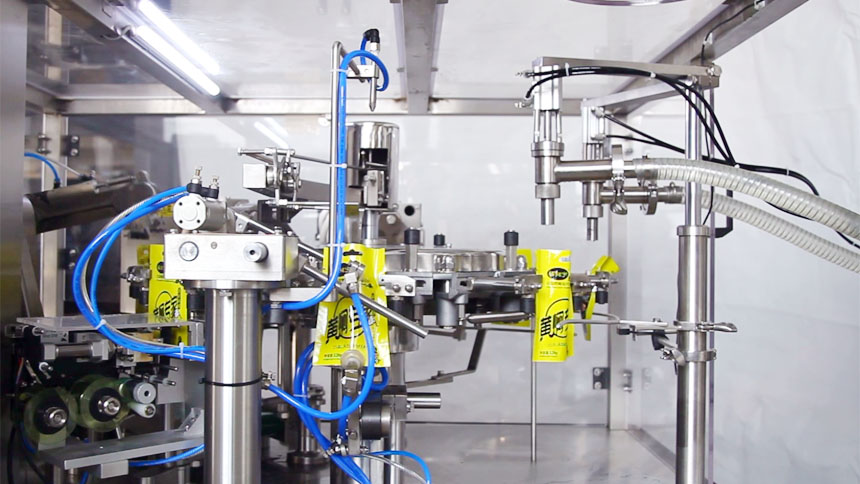 全自動(dòng)給袋式液體醬體包裝機(jī)產(chǎn)品特點(diǎn):